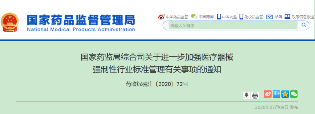 国家药监局综合司关于进一步加强医疗器械 强制性行业标准